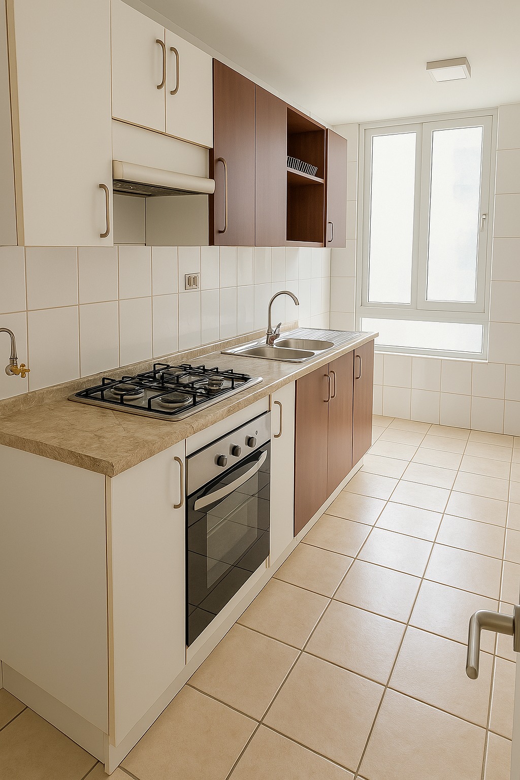 - Cocina amoblada con encimera y conexión para lavadora